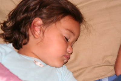 I took this photo tonight as my little angel was sleeping. Poor girl, she fell asleep in the car today on the way home from Jack's game, which gave her a 15 minute power nap and there was no turning back. You know how it is, if they fall asleep in the car, you either have to commit to a 2 hour drive or suffer the loss of the nap for the day. At $4/gallon, I decided to suffer the consequences. Anyway, that's not what this post is actually about. Later on today, my friend Sonja and I took our boys to the skate park and then out to dinner and all this resulted in Meg being out 1) past her bedtime without a nap and 2) eating dinner about an hour after she is normally in bed (all without a nap.) She was a total trooper through the whole thing. She really never fussed or cried, she just went with the flow. Have I mentioned how blessed we are that God chose this specific little angel for our family? Anyway, that is also not what this post is about. What this post is about is that for the first time since Meg joined our family, she fell asleep in my arms as I was rocking her. It was SO precious. You have to know as a Mommy I just eat that up. I have always loved to rock a sleeping baby and it was cause for celebration the first time each of them slept while I held them. Tonight, I was just trying to drink in every second of the precious moment I was having with my daughter, knowing that at 2 they are few and far between and knowing that with her being my last baby, these moments are truly precious and not to be taken for granted.